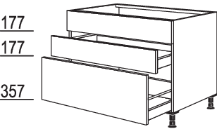 1 Schubkasten mit Auszugsblende, 400 mm tief, mit Holzrückwand für bauseitige Siphon-Aussparung