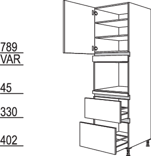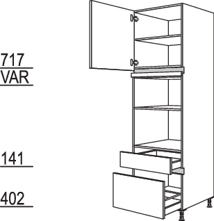 1 Gerätetür, 1 Auszug mit mechanischer Öffnungsunterstützung