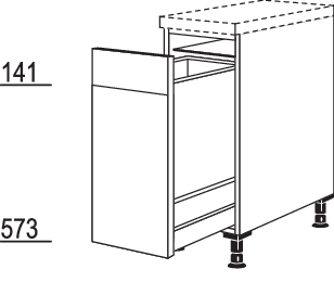 Auszugschrank mit Wertstoffsammler 1 verstifteter Auszug: