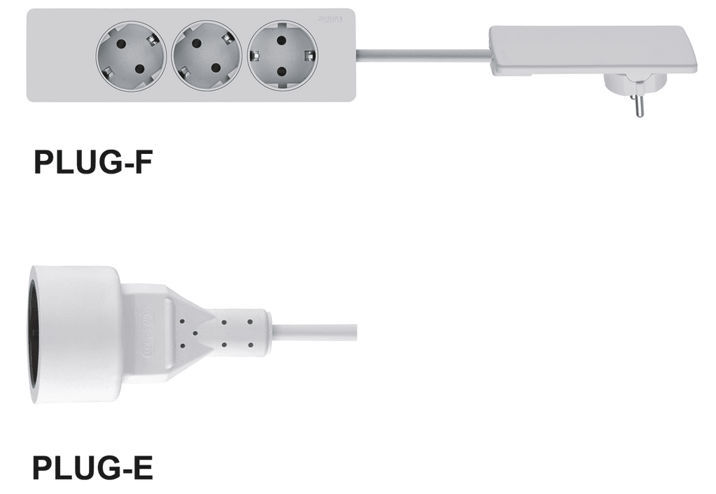 EVOline Plug Extraflacher Schutzkontaktstecker mit Kupplungsdose, 1500 mm Netzanschlusskabel Steckdosen-Typ E