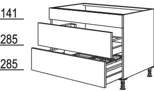 Spülen-Auszugschrank Flex 21 1 feste Blende, 1 Auszug, 400mm tief, mit Holzrückwand für bauseitige Siphon-Aussparung, unterer Auszug, 400 mm tief, mit Metallrückwand und Mülltrennsystem Flex 21: 2 x 13 Liter, Eimerhöhe: 210 mm, 2 Eimerdeckel
