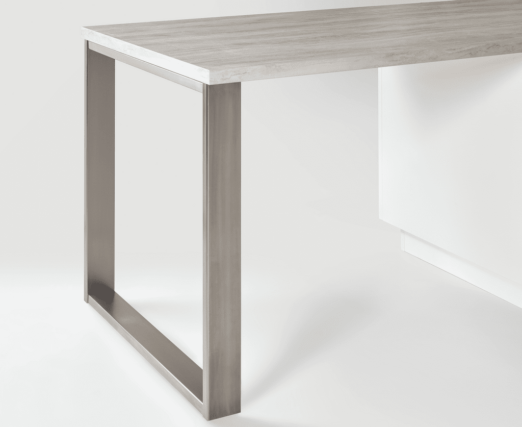 Tischkufengestell, Stahl als Arbeitsplattenabschluss für Inselplanungen