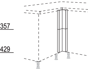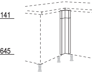 XL-Winkelpassstück Frontmaterial, variabel von 50 - 170 mm, Planmaß: 630 - 750 mm. 1. Maß = links, 2. Maß = rechts