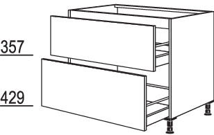 1 Schubkasten, 400 mm tief, mit Holzrückwand für bauseitige Siphon-Aussparung,