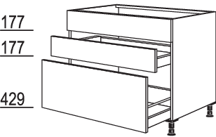 1 Schubkasten mit Auszugsblende, 400 mm tief, mit Holzrückwand für bauseitige Siphon-Aussparung,