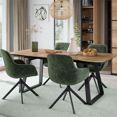 Esstisch Porto mit Frontslide Auszug und Butterfly Klappeinlage 1 Vierfuß-Tischgestell eckig, Stahl gepulvert inkl. Gleiter,